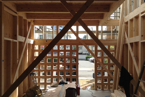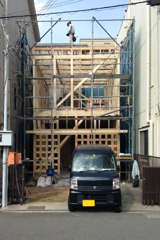 大阪市で進めていた、「こどものための絵本文庫」の現場が上棟し、外壁工事に取り掛かっています。