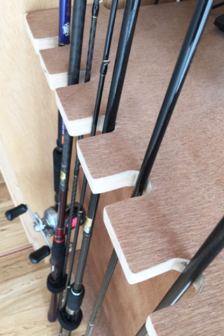 カウンターの端は釣り竿置き場。