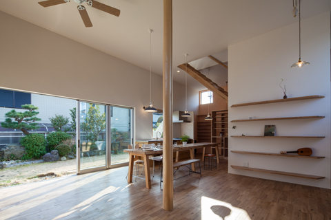庭に出る窓以外は高窓にしているので、室内から空の様子がよく分かります。